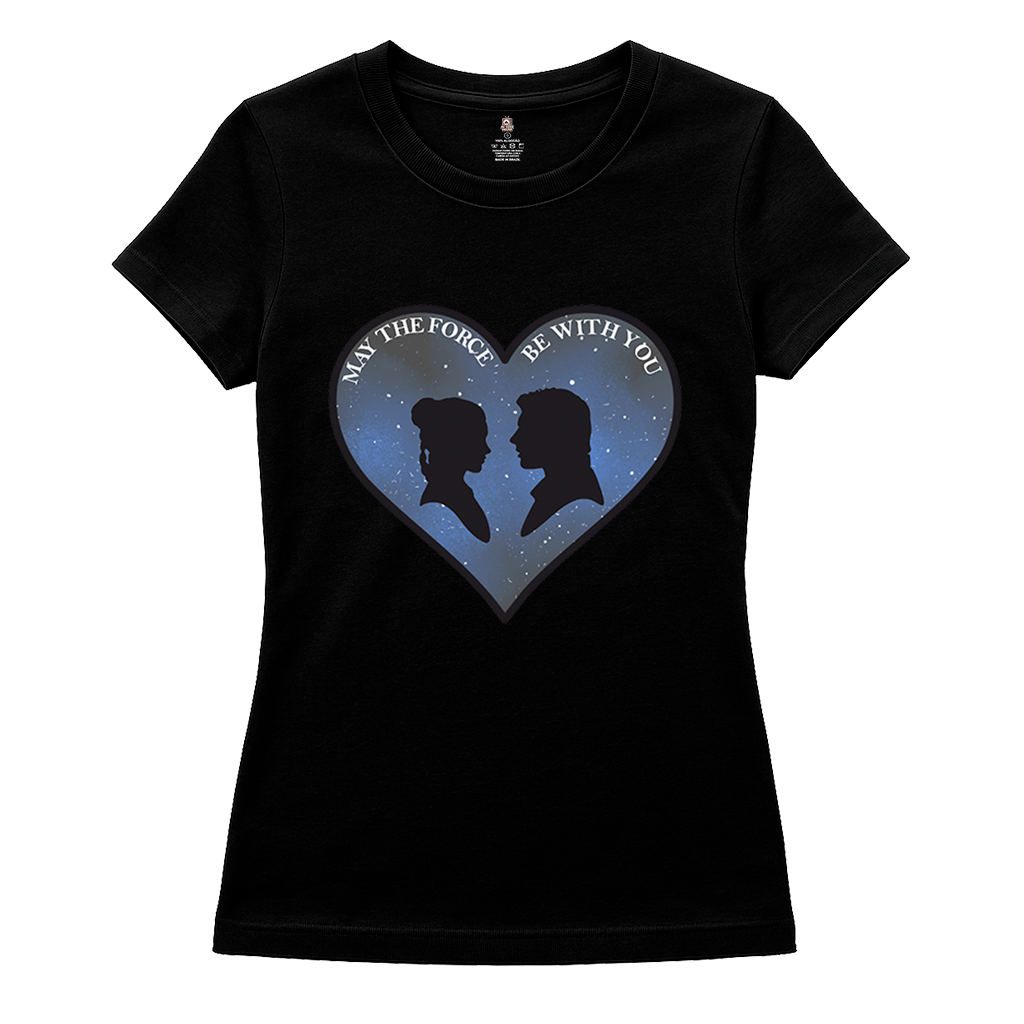 Camiseta Baby Look Star Wars – Casal Leia & Han Solo (Silhuetas no Coração)